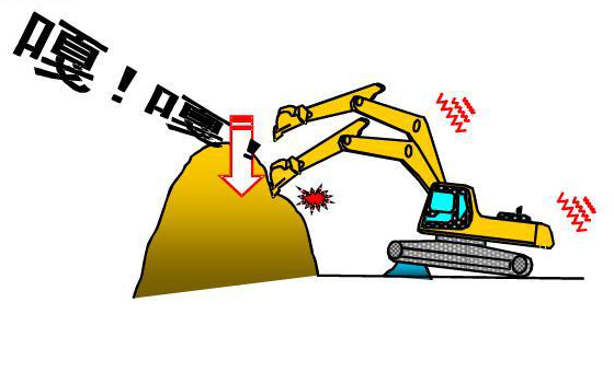 第三種禁止的操作行爲是:利用挖鬥側(cè)壁碰撞力移動物體或者回轉力移動大件物體。如圖所示,當挖鬥與岩石發生碰撞時,挖鬥、動臂以及工作裝置會産(chǎn)生較大的負荷,嚴重影響挖機的使用壽命。因此這種操作也是不允許的。