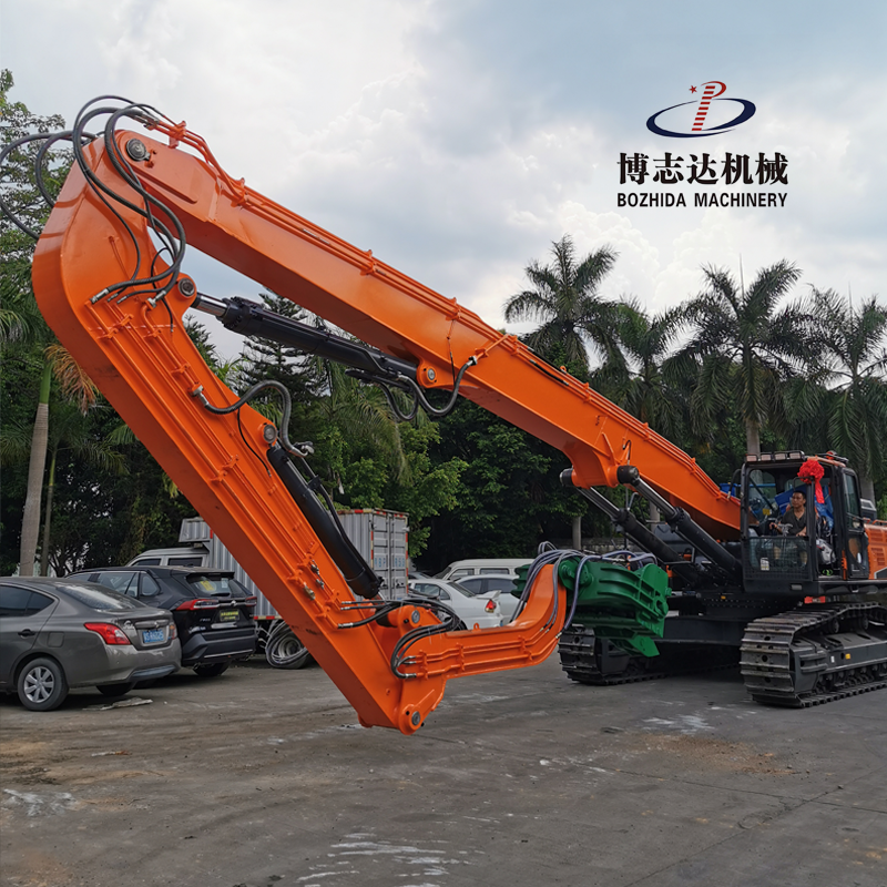 挖掘機打樁臂,是專爲打樁作業設計的特殊結構件,它将挖掘機的多功能性和打樁作業的高效率完美結合,廣泛應用於(yú)建築、橋梁、道路等基礎(chǔ)設施建設中。下面是對挖掘機打樁臂的詳細介紹: 結構與功能 挖掘機打樁臂通常包括加長的大臂、小臂、彎臂、打樁錘(或稱爲打樁機)以及用於(yú)固定和導向樁的裝置。臂的設計允許挖掘機在保持穩定的同時,将樁基精確(què)地放置在預定的打樁位置。打樁錘通過重力或液壓動力産生沖擊力,将樁基打入地下,實現地基加固或支撐結構的搭建。 技術特點 1. 高适應性:挖掘機打樁臂能夠(gòu)根據不同的地形和土壤條件調(diào)整打樁深度和力度,适應各種施工環境。 2. 操作靈活:通過挖掘機的旋轉和伸展功能,打樁臂能夠覆蓋更廣泛的作業區域,減少設備(bèi)的移動(dòng)次數,提高施工效率。 3. 安全性:挖掘機打樁臂通常配備(bèi)有安全控制系統,能夠實時監測(cè)作業狀态,避免過載或誤操作,保障操作人員和設備(bèi)的安全。 4. 環保考量:在設計上,打樁臂盡量減少噪音和振動(dòng),減少對周邊(biān)環境的影響,更符合現代施工的環保要求。 應用場景 基礎建設:在高層建築、橋梁、道路等基礎設施建設中,挖掘機打樁臂用於(yú)打設支撐樁,確(què)保結構的穩定性和安全性。 臨時工程:在臨時圍擋、支架搭建等工程中,打樁臂能夠快速、準確(què)地完成打樁作業,爲工程提供必要的支撐(chēng)。 救援作業:在自然災害後的重建工作中,打樁臂用於(yú)加固受損結構,爲救援和重建創(chuàng)造條件。 挖掘機打樁臂作爲現代施工中的重要工具,其高效、靈活、安全的特點,極大地提高瞭(le)打樁作業的效率和質量。随著(zhe)技術的不斷進步,未來的挖掘機打樁臂将更加智能化、環保,爲基礎設施建設提供更有力的支持。 ![]() ![]() ![]() ![]() |