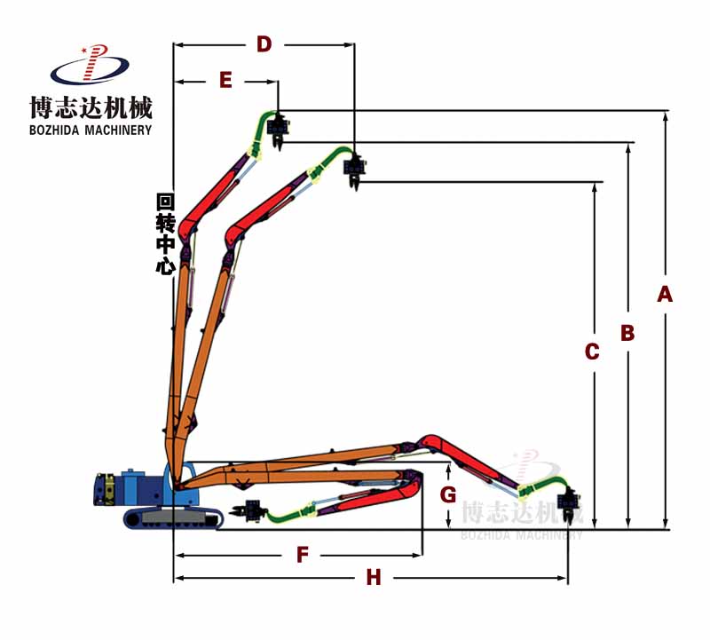 挖掘機打樁臂,是專爲打樁作業設計的特殊結構件,它将挖掘機的多功能性和打樁作業的高效率完美結合,廣泛應用於(yú)建築、橋梁、道路等基礎(chǔ)設施建設中。下面是對挖掘機打樁臂的詳細介紹: 結構與功能 挖掘機打樁臂通常包括加長的大臂、小臂、彎臂、打樁錘(或稱爲打樁機)以及用於(yú)固定和導向樁的裝置。臂的設計允許挖掘機在保持穩定的同時,将樁基精確(què)地放置在預定的打樁位置。打樁錘通過重力或液壓動力産生沖擊力,将樁基打入地下,實現地基加固或支撐結構的搭建。 技術特點 1. 高适應性:挖掘機打樁臂能夠(gòu)根據不同的地形和土壤條件調(diào)整打樁深度和力度,适應各種施工環境。 2. 操作靈活:通過挖掘機的旋轉和伸展功能,打樁臂能夠覆蓋更廣泛的作業區域,減少設備(bèi)的移動(dòng)次數,提高施工效率。 3. 安全性:挖掘機打樁臂通常配備(bèi)有安全控制系統,能夠實時監測(cè)作業狀态,避免過載或誤操作,保障操作人員和設備(bèi)的安全。 4. 環保考量:在設計上,打樁臂盡量減少噪音和振動(dòng),減少對周邊(biān)環境的影響,更符合現代施工的環保要求。 應用場景 基礎建設:在高層建築、橋梁、道路等基礎設施建設中,挖掘機打樁臂用於(yú)打設支撐樁,確(què)保結構的穩定性和安全性。 臨時工程:在臨時圍擋、支架搭建等工程中,打樁臂能夠快速、準確(què)地完成打樁作業,爲工程提供必要的支撐(chēng)。 救援作業:在自然災害後的重建工作中,打樁臂用於(yú)加固受損結構,爲救援和重建創(chuàng)造條件。 挖掘機打樁臂作爲現代施工中的重要工具,其高效、靈活、安全的特點,極大地提高瞭(le)打樁作業的效率和質量。随著(zhe)技術的不斷進步,未來的挖掘機打樁臂将更加智能化、環保,爲基礎設施建設提供更有力的支持。 ![]() ![]() ![]() |